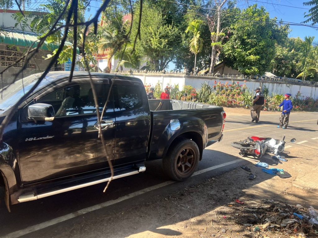 ร้อยเวรสอบสวนตรวจสอบที่เกิดเหตุ 16 มกราคม 2568 โดย admin / งานสอบสวน วันที่ 16 ม.ค. 2568 เวลา 14.10 น. ร.ต.อ.พิชิตชัย เดือนใส รองสว.สอบสวน สภ.ตูม ได้รับแจ้งว่ามีเหตุรถยนต์ชนกับรถจักรยานยนต์ที่บริเวณหน้าวัดบ้านตูม ต.ตูม อ.ศรีรัตนะ จ.ศรีสะเกษ จึงได้เดินทางไปตรวจสอบที่เกิดเหตุ พบรถจักรยานยนต์ 1 คัน รถกระบะ 1 คัน ฝ่ายรถจักรยานยนต์บาดเจ็บ 3 คน จึงได้โทรแจ้งโรงพยาบาลศรีรัตนะมารับตัวคนเจ็บเข้ารับการรักษาตัวที่โรงพยาบาลศรีรัตนะและได้นำรถทั้งสองคันมาเก็บรักษาที่ สภ.ตูม FacebookFacebookXXLINELine