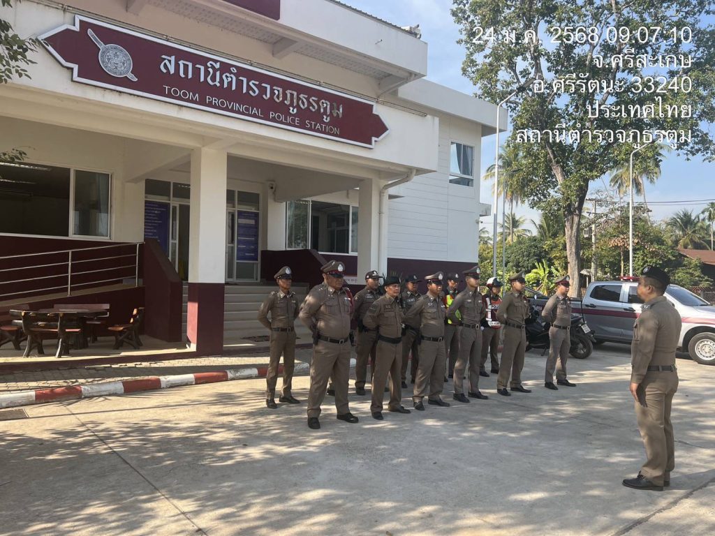 วันที่ 24 มกราคม 2568 เวลา 08.30 น. พ.ต.ท.อรรคลิลล์ ถิ่กาแบง สว.สภ.ตูม ร่วมเข้าแถวเคารพธงชาติ สวดมนต์ไว้พระ กล่าวอุดมคติตำรวจ ตรวจเครื่องแต่งกาย และอบรมคุณธรรม จริยธรรมแก่เจ้าหน้าที่ตำรวจที่ออกปฏิบัติงาน ทั้งในและนอกสถานี โดยมุ่งเน้นการสร้างความพึงพอใจแก่ผู้ใช้บริการ และประชาชนในพื้นที่ กำชับการปฏิบัติ ให้ปฏิบัติหน้าที่ด้วยความซื่อสัตย์สุจริต ห้ามมีการเรียกรับสินบน หรือผลประโยชน์อื่นใดจากการปฏิบัติหน้าที่อย่างเด็ดขาด