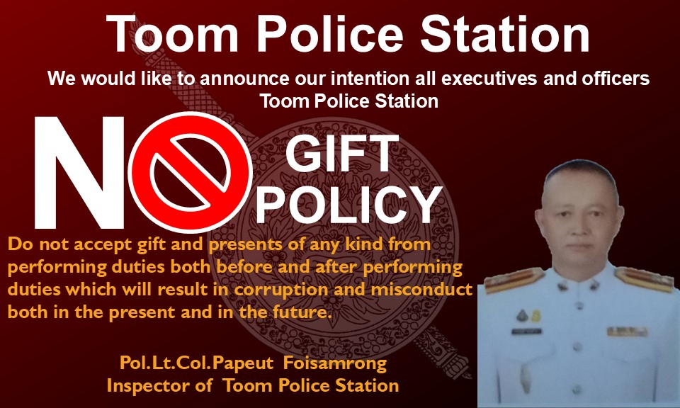 ประกาศนโยบายต่อต้านการรับสินบนที่จุดประชาสัมพันธ์